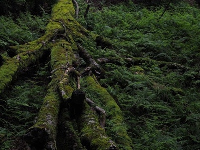 自然の循環(朽ち果てる巨木と、そこに芽生える新たな生命)