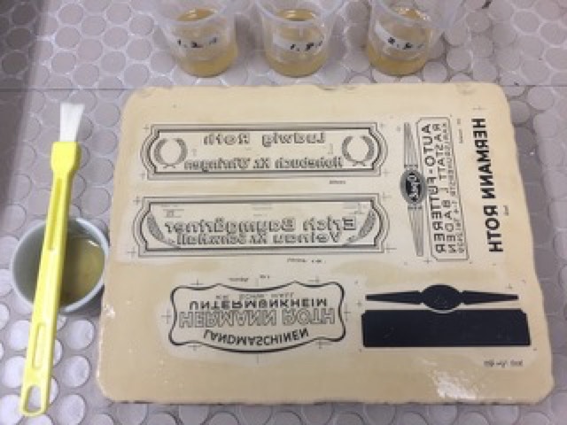 ドイツでラベルの印刷に使われた石版石(自宅工房)