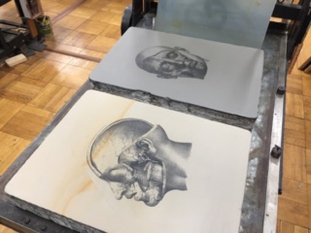 1820年代に石版で刷られた解剖図を石版に再現(東京芸術大学、版画研究室リトグラフ工房)
